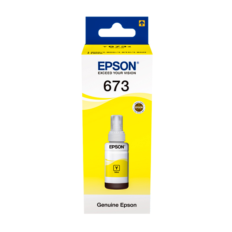 Чернила оригинальные EPSONТип чернил: ВодорастворимыеЦвет чернил: ЖелтыйМодель: C13T67344A (T6734)Объем: 70млСовместимость с моделями: Epson L1800,L800,L805,L810,L850