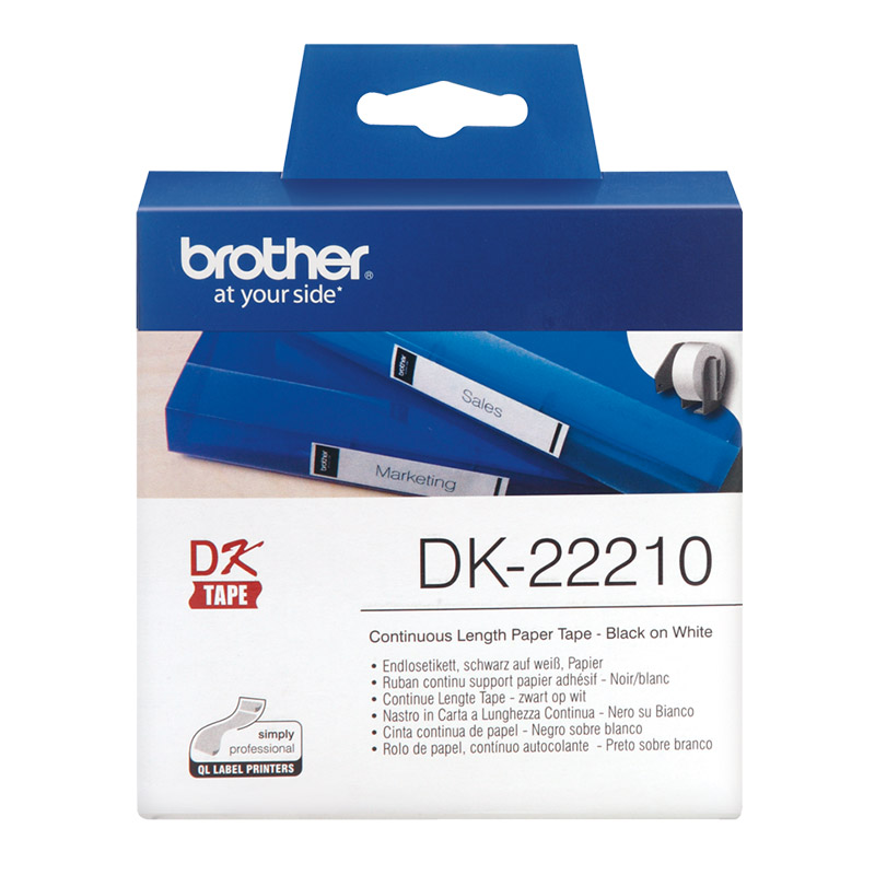 Ширина: 29 ммДлина: 30.48 мМодель: DK-22210Тип: Непрерывная бумажная лентаЦвет печати: Черный на белом фонеСовместимось: Brother QL-800,QL-810W,QL-820NWB,QL-570,QL-710W,QL-720NW